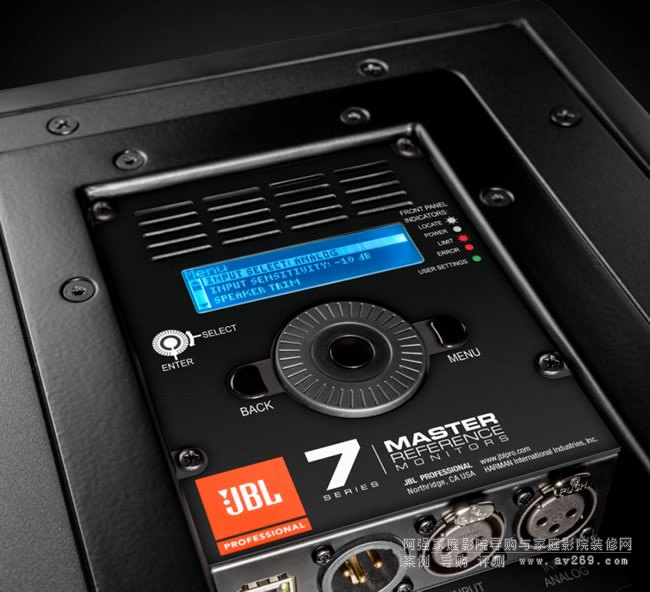 一般來說,有源監聽音箱的有源功放只提供一組平衡和非平衡接口。它們的內部EQ調節模式也相對有限,只需幾組旋鈕來完成音響調整即可。然而,JBL Professional 7系音箱不僅提供常規接口,還提供了一些專業功能,如數字信號串聯。