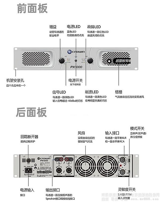 · RCA和XLR輸入接口:Speakon?和喇叭接線柱輸出接口;