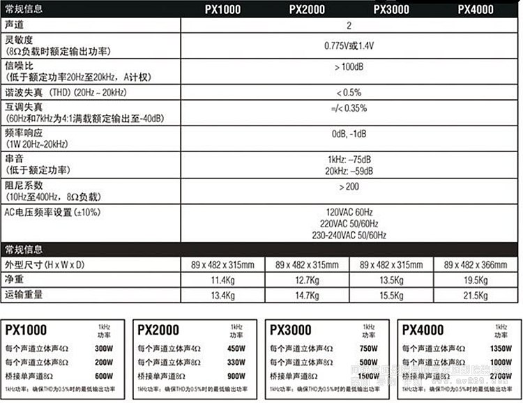 · 用戶可選擇的輸入靈敏度:0.775V和1.4V;