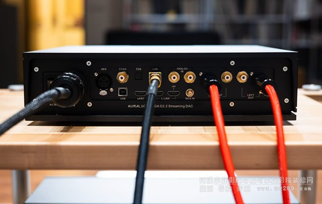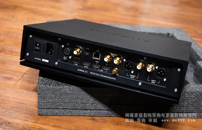 VEGA G2.2的背面,身為一臺全功能的DAC,具有非常齊全各式接口,包括XLR平衡模擬輸出,HDMI eARC、甚至還有一組RCA模擬輸入