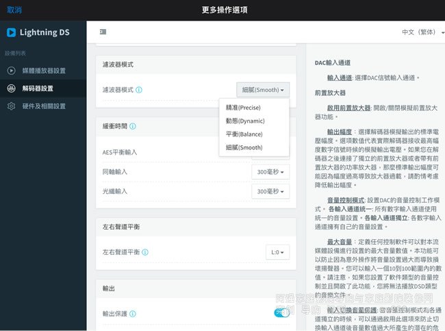 自家的操控APP – Lighting DS內(nèi)有許多功能,強(qiáng)烈建議一定要下載使用,并且多花時間每個功能都試一試,除了一些基本的功能外,還有一些特別的,例如數(shù)字濾波、EQ曲線校正....等等,未來還會有更多功能加入,重點是,這些都是免費(fèi)可下載升級的