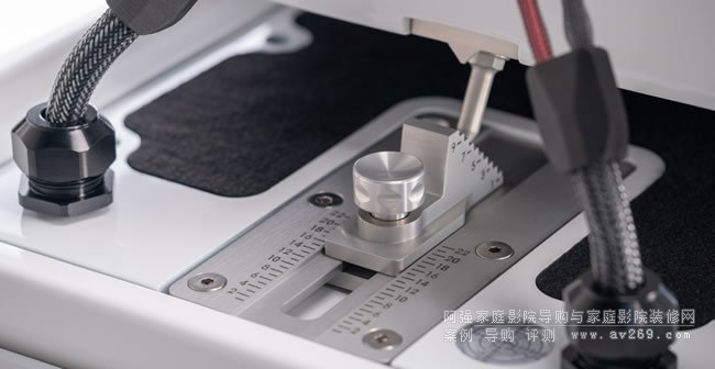 那個大柜子里面非常寬敞。與 Alexia Series 2 相比,中音外殼體積增加了約 6%,低音揚聲器外殼增加了近 9%。這兩個外殼的頂部都采用了威爾遜自己的 V 型材料,以最大限度地減少共振,S 型材料用于中音驅動器耦合,出于同樣的原因,所有三個子外殼都安裝了 X-Material 阻尼。該公司表示,每個箱體部分都指定為一定的厚度,同樣是為了最佳的抑制共振,并定位為最佳時間對齊。為了在調平揚聲器時簡化設置,低音揚聲器箱體頂部安裝了水平儀。低音部分下方是 Wilson Audio 的聲學二極管——一種采用奧氏體不銹鋼和 V 型材料的尖峰系統。