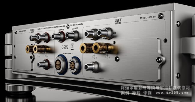 HD PHONO 采用雙機(jī)箱設(shè)計(jì),其中精致的唱機(jī)級(jí)電路被隔離在單獨(dú)的 CNC 加工鋁制機(jī)箱中。在這里,我們有雙單聲道、純 A 類和 100% 電子管級(jí)(4 個(gè) EF806S、2 個(gè) E88CC)以及新一代輸入變壓器。HD PHONO 在 RCA 上提供兩個(gè) MC 輸入和一個(gè) MM 輸入。