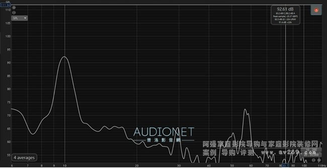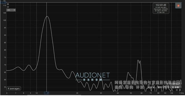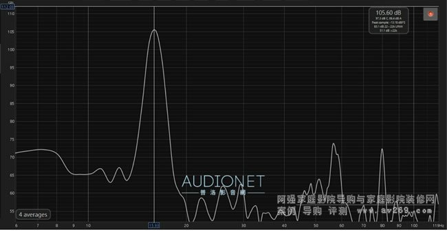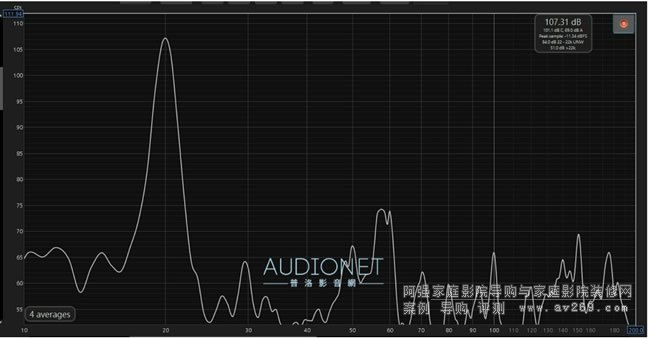 實際在聆聽位置測到的20Hz正弦波音壓跟30Hz比起來大概是-3dB左右﹐這已是一流超低音喇叭的水平了。