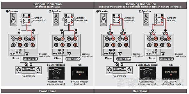 雙功放連接和橋接連接切換