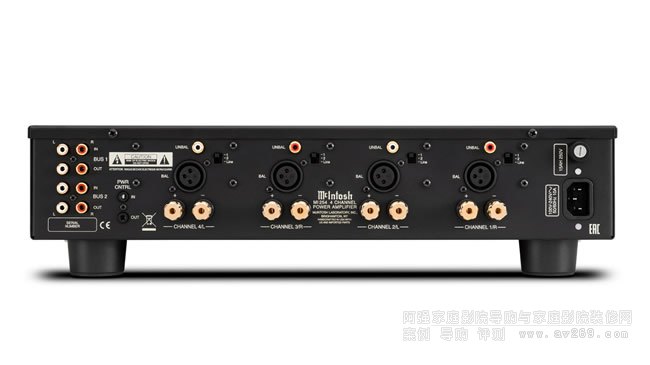 前面板上有兩個藍色的 McIntosh 功率計,顯示通道 1 + 2 和通道 3 + 4 的總功率輸出。多色 LED 指示燈顯示每個通道的狀態。后面板包括每個通道的平衡和非平衡輸入,以及我們標準的 5 路揚聲器接線柱。