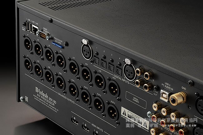MX180 配備一整套數(shù)字輸入,包括 4 個光纖、3 個同軸和 1 個 USB,每個輸入可接受高達 24 位/192kHz 的信號,以及 1 個數(shù)字平衡 (AES/EBU) 輸入。還有一組模擬音頻輸入,包括 2 個平衡輸入和 4 個非平衡輸入、一個用于連接轉盤的動磁唱機輸入和一個 7.1 多聲道非平衡輸入。