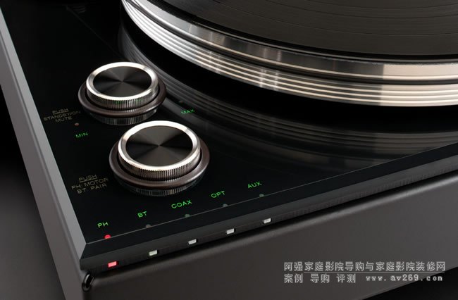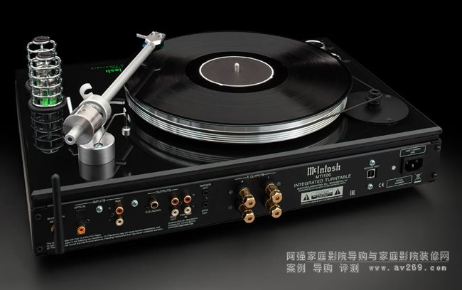 除了播放 33-1/3 和 45 rpm 黑膠唱片的轉盤外,MTI100 還包括一個功率放大器、一個真空管前置放大器部分、一個屏蔽唱機前置放大器、一個非平衡輔助輸入、數字音頻同軸和光纖輸入、一個藍牙接收器、一個低音炮輸出、用于與朋友分享音樂的立體聲揚聲器輸出,以及一個用于個人聆聽的耳機插孔。