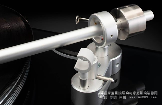 7 磅(3.18 千克)的機加工鋁盤位于設備頂部。這和配套的帶防滑功能的機加工鋁制唱臂位于一塊 3/8 英寸(9.5 毫米)厚的玻璃上——與我們大型放大器前面板上的玻璃相同;這反過來又位于定制的 1/4 英寸(6.35 毫米)厚的金屬板上,增加了穩定性。盤片和金屬板的結合重量有助于抵抗和吸收可能由外部振動引起的噪音。