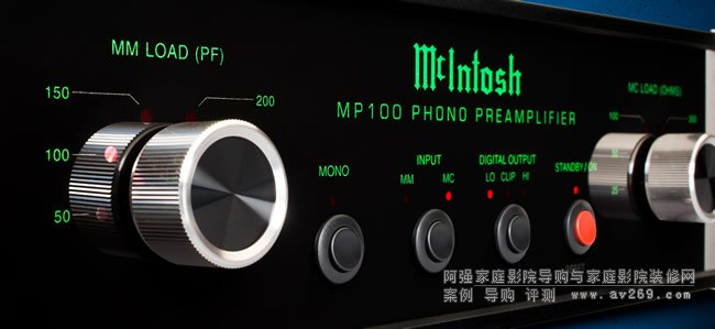 與所有 McIntosh 產品一樣,MP100 具有專為黑膠唱片愛好者設計的功能,包括:動圈和動磁鐵輸入;動圈和動磁可調負載(各 6 種設置);平衡和非平衡模擬輸出;光纖、同軸電纜和 USB 數字輸出;以及播放單聲道唱片時的單聲道開關,以降低噪音并正確播放信號。對于純模擬用途,數字輸出可以完全禁用和關斷。