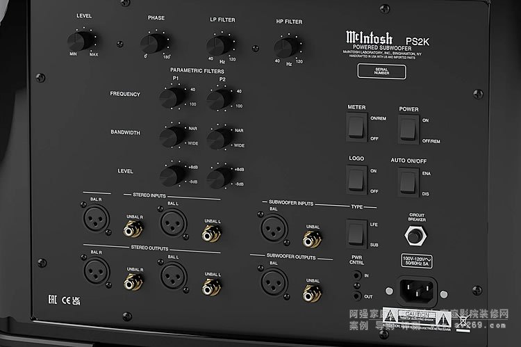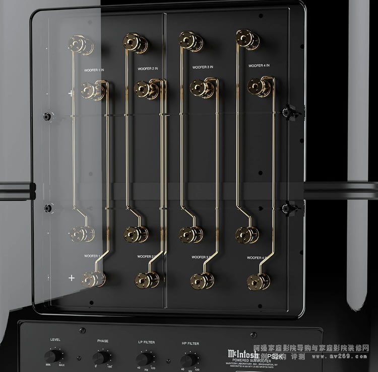 低音揚聲器堆疊在放大器模塊的頂部,該模塊具有一個功率輸出表,可顯示 PS2K 的總輸出。外殼擋板的厚度接近 1-1/2 英寸(3.8cm),以確保最終的剛度和低振動,并具有密封盒設計以消除任何潛在的端口噪音。