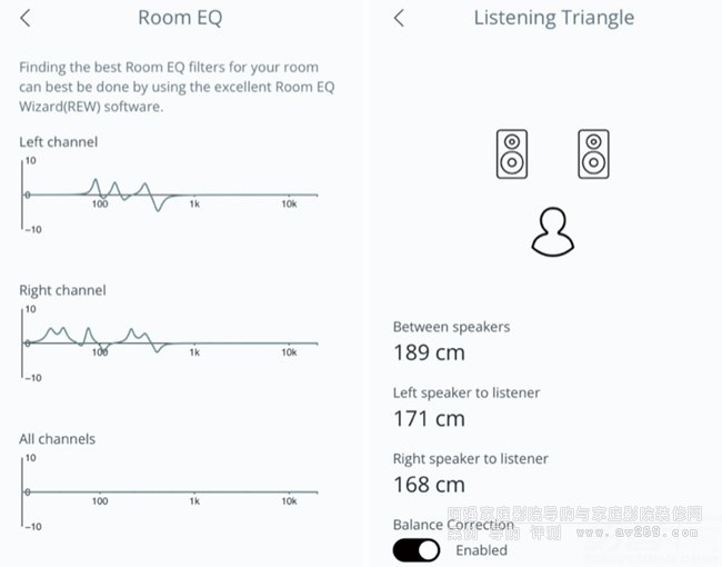 8C內置DSP,除了輸入距離后墻,兩側,左右音箱之間距離,以及到聆聽位置距離外,還提供ROOM EQ功能,能一定程度上修正房間聲學帶來的負面影響,但調整過程必須有耐心