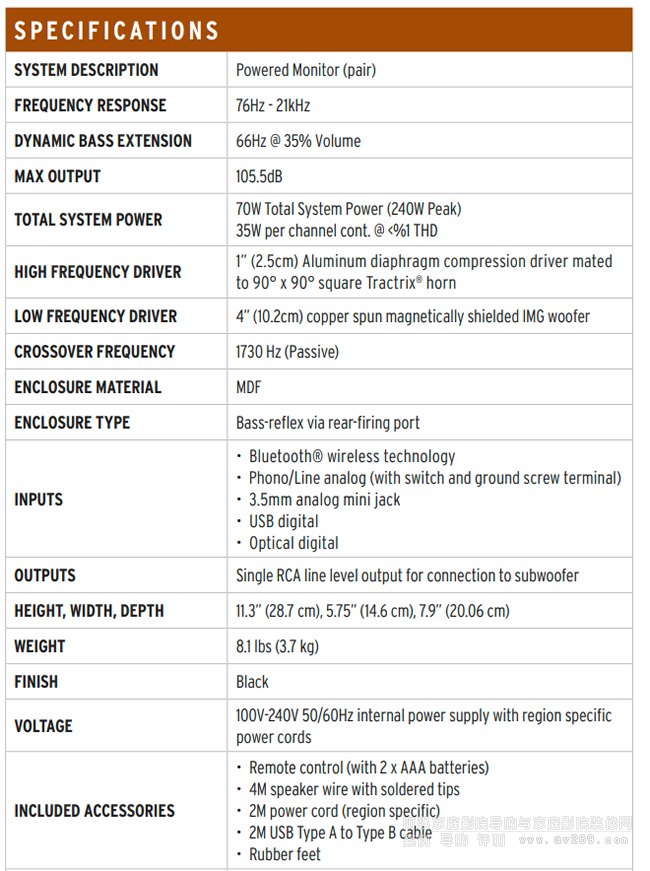 配備集成唱機前置放大器、藍牙®無線技術、數字光纖、模擬 RCA 和 USB 輸入,使這些有源揚聲器成為您最好的新朋友。