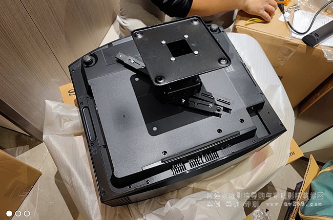 熟悉OS幕布的燒友會發現這個尺寸并不是常規的,而是特殊定制的,這里有個知識點日本OS投影幕布常規尺寸均為整數比例100、110、120、130...而歐美品牌的幕布大多是106、119、126、135英寸等等,朋友們在選購的時候稍作留意即可。