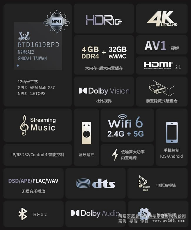 芝杜Zidoo Z2000PRO 高清硬盤播放器,芝杜長期致力于影音行業(yè)領先科技的探索,為用戶帶來震撼的影音體驗;Z2000 PRO搭載Realtek 12納米工藝的RTD1619BPD 專業(yè)處理器,嵌入式神經(jīng)網(wǎng)絡處理器1.6TOPS,支持AV1硬解,性能較上一代提升20%。內(nèi)置先進的Dolby Vision VS10畫質(zhì)處理引擎,支持Dolby vision LLDV完整處理,即使普通內(nèi)容也能夠處理得到更最佳畫質(zhì)表現(xiàn)。