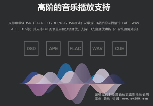 支持DSD(SACD ISO、DSF、DFF )、WAV、APE、DTS等無損音樂播放