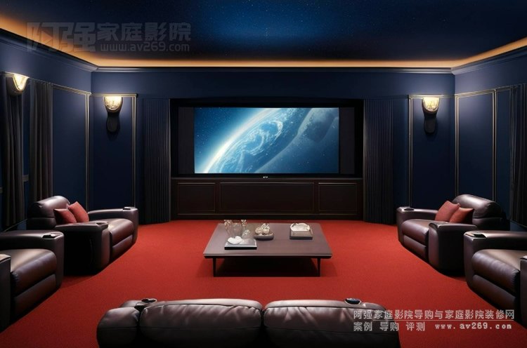 家庭影院裝修效果圖片參考,由阿強(qiáng)家庭影院采用AI生成的私人家庭影院設(shè)計效果圖供參考。