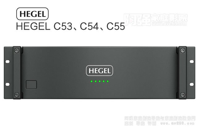黑格爾多聲道后級功放C53、C54、C55共三款分別提供3通道、4通道和5通道功率放大,每通道150瓦。