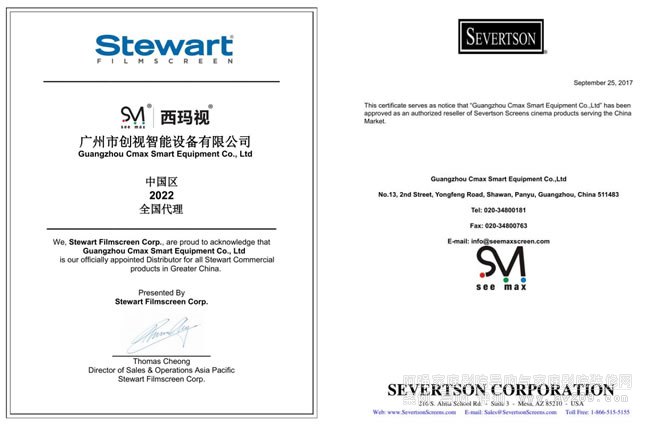 我司目前也是美國STEWART 投影銀幕在中國商用市場的獨家代理,美國SEVERTSON 投影銀幕的授權經銷商