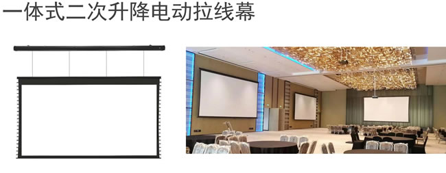 二次升降部分可以設置5米的下降距離、解決高天花的投影顯示問題,最大300英寸
