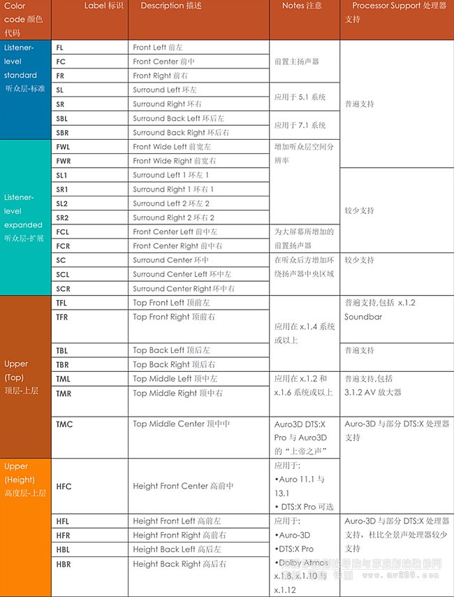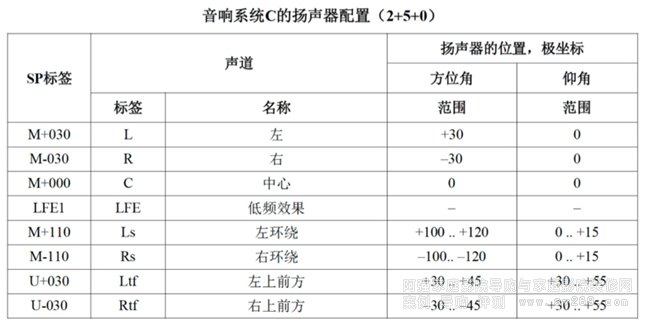 沉浸式音效系統(tǒng)中各個位置獨(dú)立揚(yáng)聲器通道的具體標(biāo)識