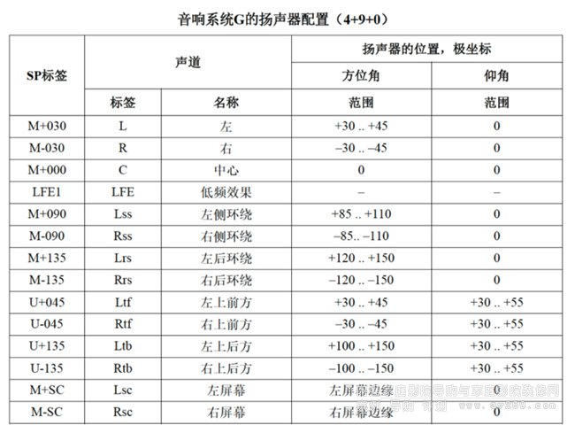 音響系統(tǒng)G的揚(yáng)聲器配置(4+9+0)