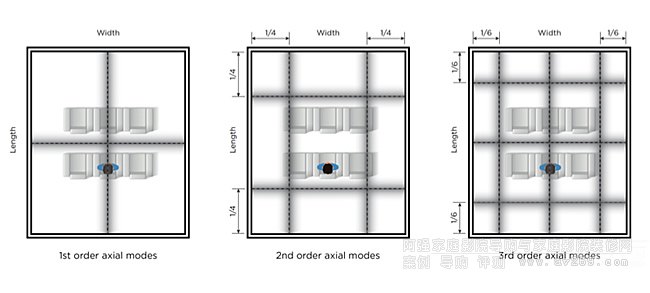 上圖列出了一階、二階與三階軸向房間模式的具體位置