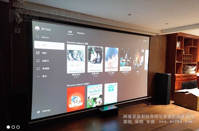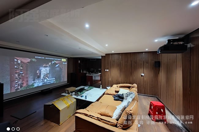 來自天津濱海新區的多聲道杰士音箱與4K索尼投影機案例,音頻系統采用的是天龍功放和杰士音箱的組合,簡單做成了一套5.1聲道系統,視頻采用索尼4K投影機XW5000和一款180英寸的電動投影幕布。音源暫時使用的是Apple TV盒子在線觀影或調用NAS調用來觀看。下在隨阿強簡單的看看現場安裝的圖片。