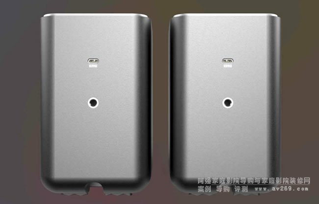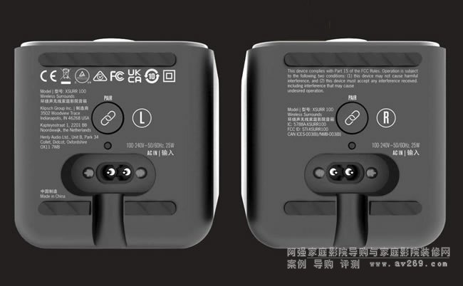 Flexus Surr 100環繞喇叭的電源線插孔隱藏在底板下方,一對Flexus Surr 100環繞喇叭是有左右之分的,與Flexus Core 100或Core 200聲霸之間以藍牙配對無線連接。