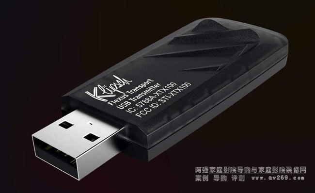 這就是Flexus Surr 100主動式環繞喇叭與Flexus Sub 100主動式超低音所附帶的無線傳輸棒,將其插在Flexus Core 100或Core 200聲霸背板對應之USB插槽,就能以無線方式連接傳輸音頻。