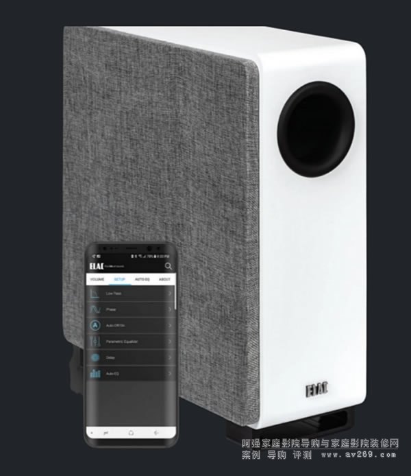 利用 ELAC SUB Control 2.0 應用程序和智能手機的麥克風,Muro 系列低音炮將使用 12 段參數均衡器自動平衡您房間的特性。也可以手動調整。
