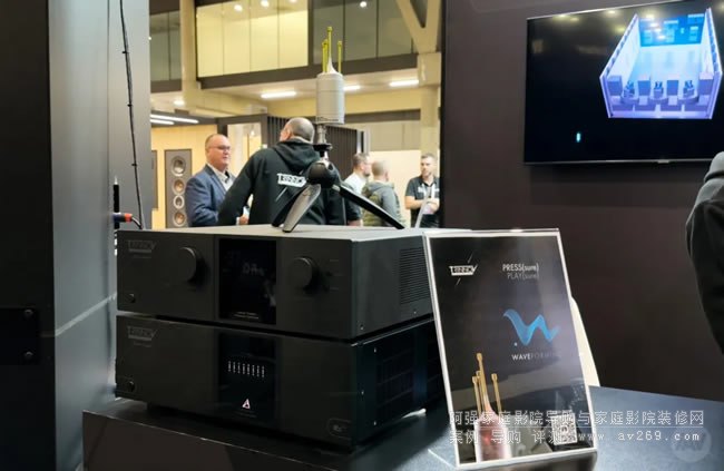 Trinnov與多家合作伙伴合作,展示了包括Altitude處理器在內的各種音響解決方案。重點展示了他們的WaveForming技術的新功能,包括Pressurization模式,現場搭建了一個13.14.6聲道家庭影院系統,其中包括14個低音炮,采用了最新的WaveForming技術。