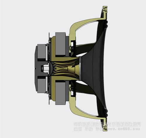 SGM-15的15寸同軸單體,中央是一個由1.3吋(33mm)鋁鎂合金振膜的高音,負責1.1kHz以上的所有頻段。 至于與高音共享同一圓心的中低音單體,是一個15寸(380mm)的紙盆低音,且采用W型布質纖維懸邊,整體設計可說是向Prestige GR系列看齊。