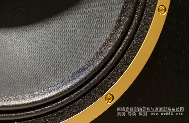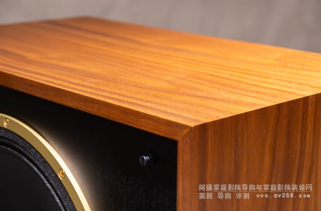 箱體雖沒有 Prestige GR 系列那樣講究裝飾,但做工依然精致,胡桃木貼皮收邊都很漂亮,尤其在轉角處的處理尤可見其手法。 箱體大,會不會有共振?你會問,Tannoy 當然也想到了。 他們用 19mm 厚的塑合板制成箱體的主部,內部特定處加上 MDF 和夾板支撐,強化整體結構,增進箱體本身的阻尼。 低音反射孔位于前方,SGM-15 更有三個開口,看起來相當霸氣。 喇叭網罩是靠插銷固定,跟 Prestige GR 一樣都是整片面網,不像 Legacy 系列那樣分成兩截。