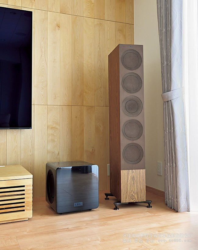 對于前置和中置揚聲器,我們選擇了 KEF“R 系列”胡桃木,以響應先生/女士對與地板楓木顏色相匹配的設計要求。 Mr./Ms.向原本喜歡英國品牌音箱音質的I先生推薦,經過反復試聽,他想出了“R系列”。 通過為環繞聲和頂部揚聲器選擇嵌入式類型,它支持杜比全景聲 7.2.4 聲道,而不會影響干凈的美感。 此外,嵌入式揚聲器根據筒燈的位置對稱排列,每一個細節都一絲不茍,這是真正的專業技術。對于前置揚聲器,我們選擇了KEF“R系列”的旗艦“R11”。 安裝了兩個 KEF“KF92 低音炮”低音炮,讓您享受強大的低頻。