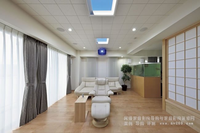 開放式客廳空間打造的家庭影院系統,品質與美觀的兼具,由JVC投影機、菊地電動幕、索尼電視、松下藍光機、雅馬哈影院功放、前置揚聲器:KEF R11 - 中置揚聲器:KEF R2c  環繞揚聲器:KEF Ci160QR   后置環繞揚聲器:KEF Ci160QR  頂部前后置揚聲器:KEF Ci160QR  低音炮:KEF KF92 低音炮 x 2等配置。