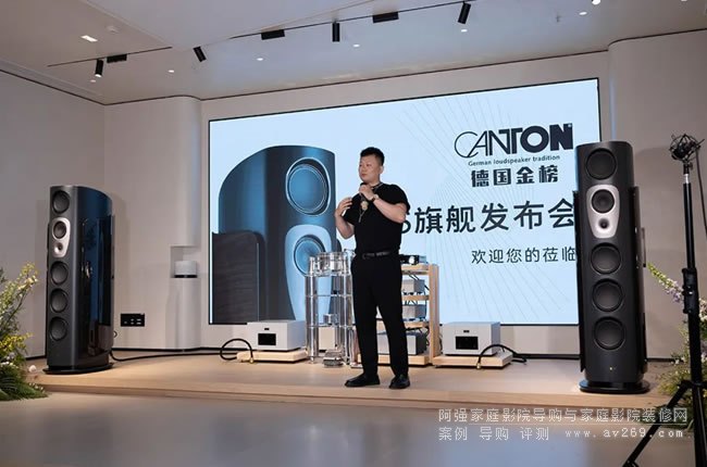 在期待中,CANTON新旗艦產(chǎn)品終于揭開了神秘面紗。通過視頻短片和PPT展示,陳總詳細(xì)解讀了CANTON(德國金榜)新旗艦REFERENCE GS EDITION(參考系列GS紀(jì)念版)音箱的技術(shù)細(xì)節(jié)、創(chuàng)新點(diǎn)與設(shè)計(jì)理念。