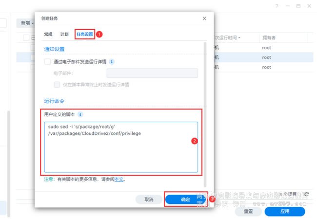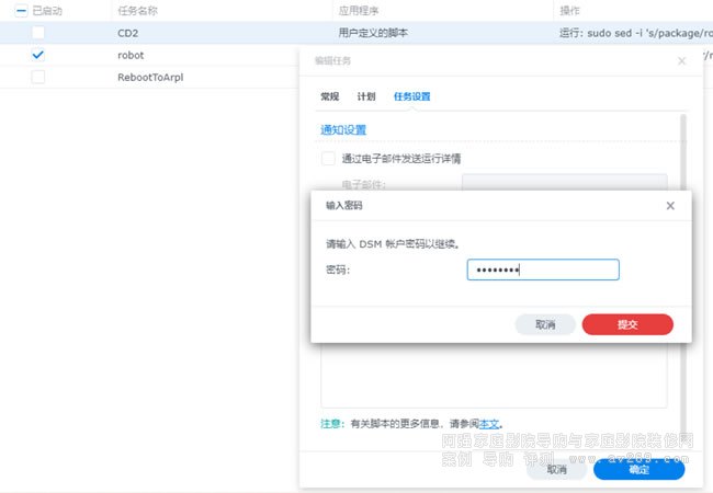 溫馨提示:因執行SSH腳本需root權限,保存該任務要輸入群暉管理員密碼!!!