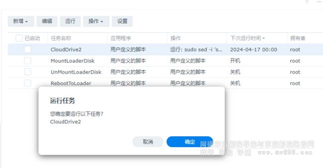 用戶定義的腳本:sudo sed -i 's/package/root/g' /var/packages/CloudDrive2/conf/privilege