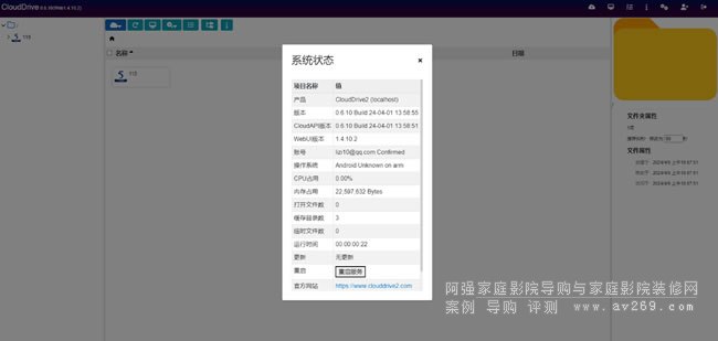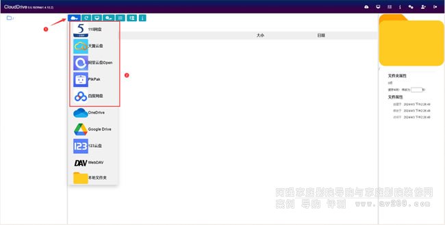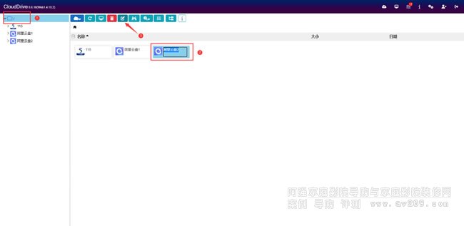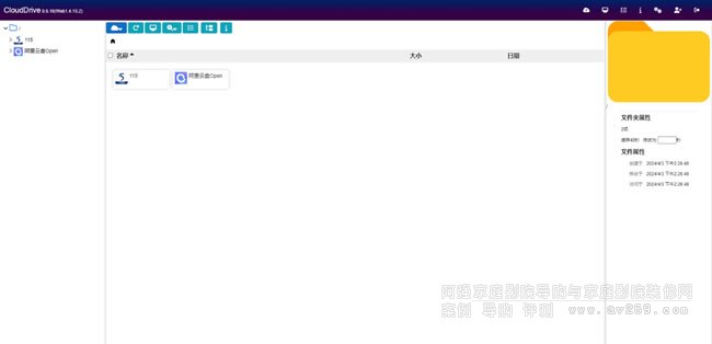 3、【如下圖】網盤登錄完成WEB頁面即會顯示該網盤信息,您可以在當前頁面管理網盤資源,也可以直接網頁播放網盤中的音視頻,到這CloudDrive設置就完成了