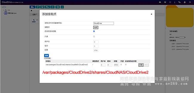6、下列提供了群暉NAS默認掛載路徑,如果不小心誤刪CloudDrive2默認掛載,請進入WEB頁面添加掛載點菜單手動添加