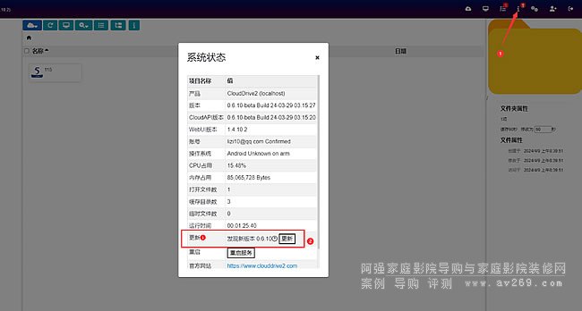 ●CloudDrive WEB頁面點擊右上角信息,系統狀態菜單有新版本時會出現提示