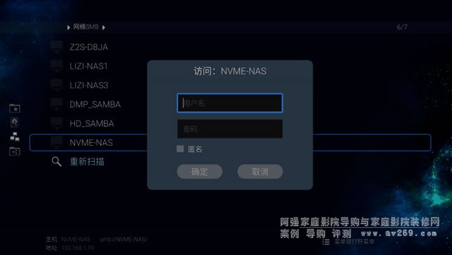 播放器進入媒體中心(文件管理器) - 網絡SMB - 等待芝杜自動搜索,當搜索群暉NAS名稱后,點擊輸入群暉管理員賬號密碼登錄,進入CloudNAS即可直接瀏覽與播放網盤里面的音視頻文件