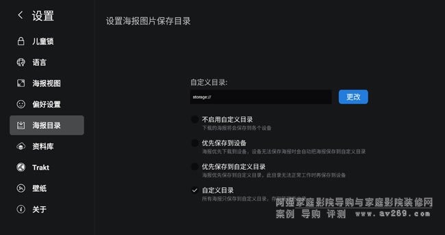 ●請進入海報目錄設置自定義目錄,建議外接一個SATA或USB硬盤作為海報封面存儲,在海報墻設置 - 海報目錄可以自定義修改海報封面保存路徑