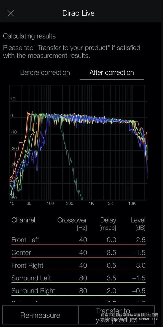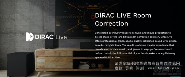 至于環繞聲系統的調教就不得不說到Dirac Live,它是目前在家庭影院放大器,環繞聲解碼器當中被廣泛應用的揚聲器/房間修正技術,能夠一定程度上消除房間聲學所帶來的聲音缺陷,還能以簡便快速的方式操作,效果顯著。