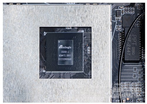 掀開主電路板上厚實的金屬散熱片,就能找到PlayerOne 8K所采用的8K SoC芯片,來自晶晨(Amlogic) S928X-J芯片