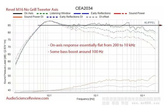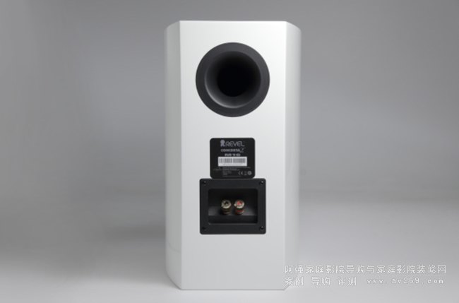 高音單元是一顆1英寸的鋁質振膜高音。Revel特別強調,這個振膜本身的諧振非常低,經過測量,其機械諧振低于其發聲頻率范圍,因此不會影響高音的音色。Revel還為高音單元設計了一個特殊的導波器。在高音單元外部,有一個圓形的淺碟狀號角式開口,整個框架是圓形的,但淺碟凹陷區域呈現橫向橢圓形,這種設計有助于高音在水平方向的擴散。此外,高音單元前方還有一個立體的導波器,可以幫助引導聲波,使高音與中低音單元的發聲更加融合。