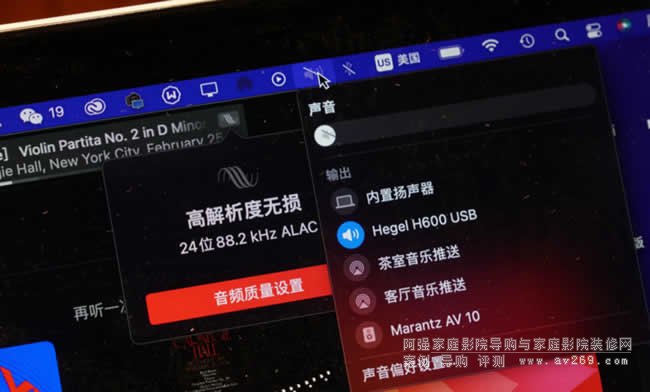采用H600內置DAC結合Macbook和Apple Music平臺實現流媒體音樂播放