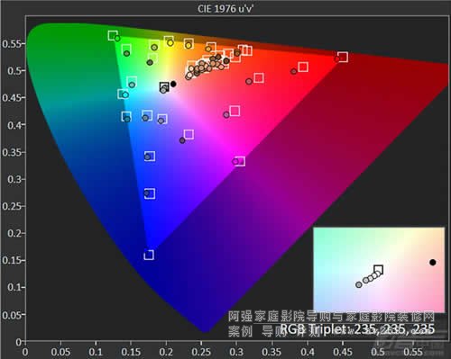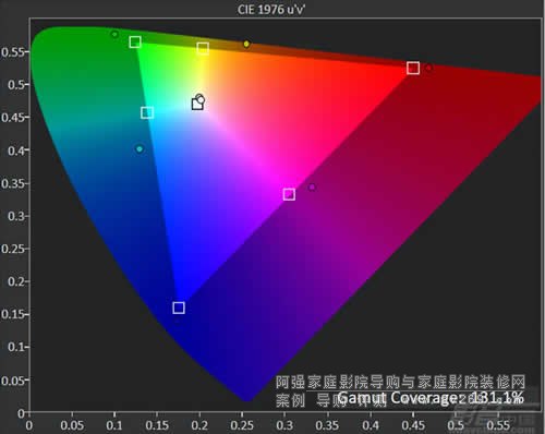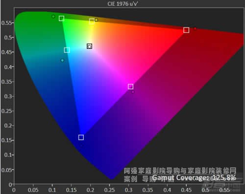 影院模式的色域覆蓋范圍達到了125.8% BT.709,但是亮度卻有了明顯的下滑,僅為25fL左右