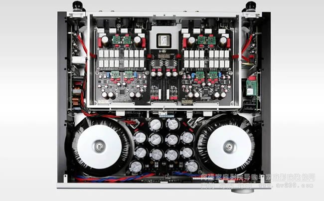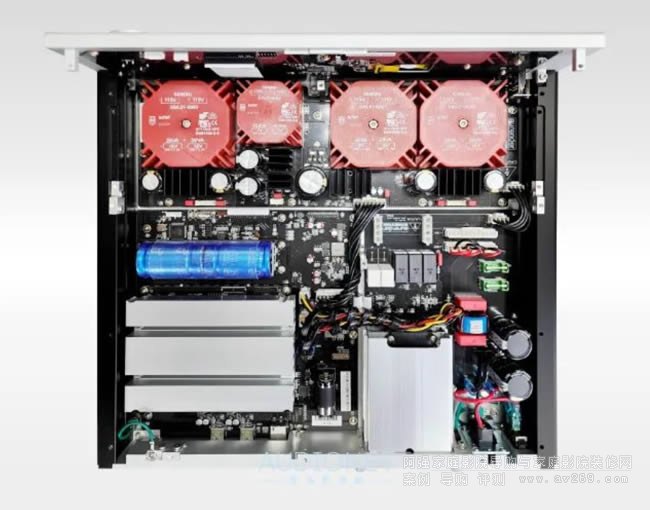 而我想玩家們最好奇的是AP20的后級設計。Aurender身為數字串流專家,也深知放大器的技術專業性,所以它們并沒有自行研發,而是采用目前市場上最好的Purifi Eigentakt 1ET400A D類功放模塊,總諧波失真小于0.00017%,且本機還是采用Dual-Mono的形式,也就是左右聲道各搭載一組獨立的1ET400A,分別位于機箱的兩側,以達到更好的音樂分離度,推力當然也倍增,每聲道在8歐姆的負載下擁有200瓦輸出功率,4歐姆則來到350瓦,阻尼因子也有800的水平!